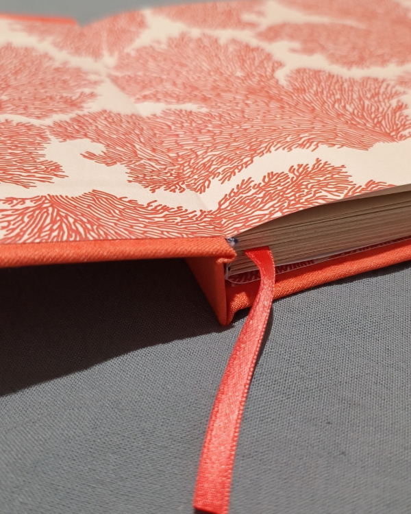 Está hecha con 80 hojas de papel ecológico. Cuenta con cinta señaladora, y hojas de guarda con nuestro papel "coral", diseñado por nosotras.
